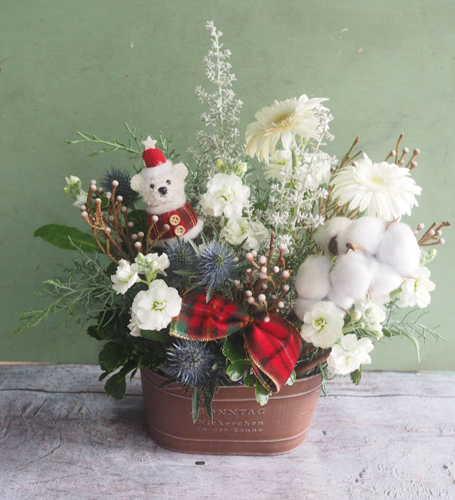 アレンジメントのベースになるカゴは、お花に合わせてチョイス致します。