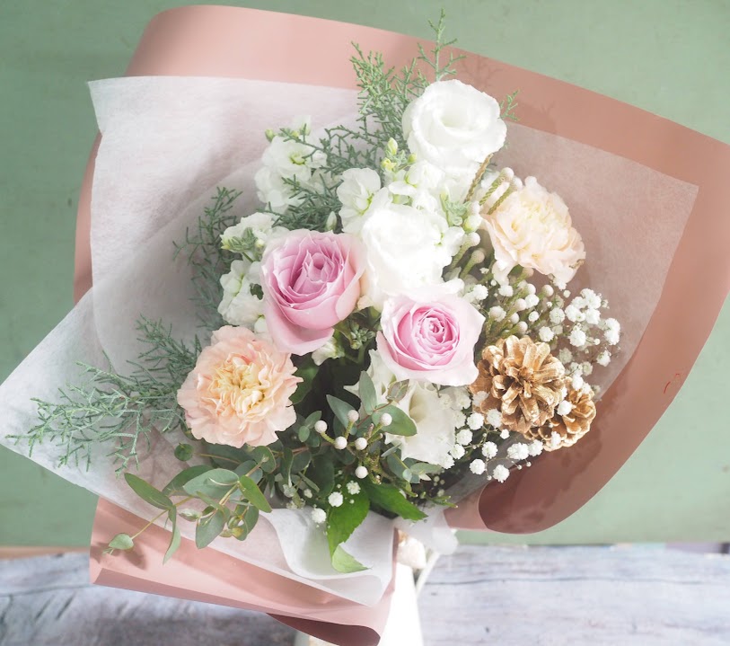 お花の種類や、挿し方(ラインを活かして長めに・短めにキュッと可愛らしくなど)により変化します。