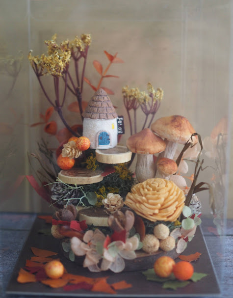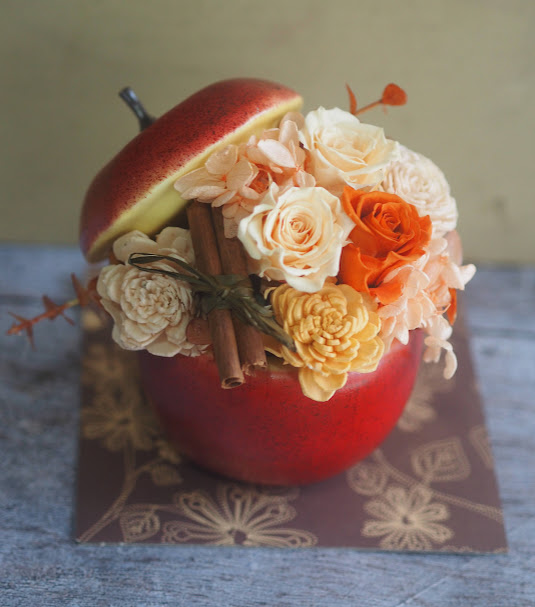 プリザーブドとアーティフィシャルフラワーミックスでの制作です。